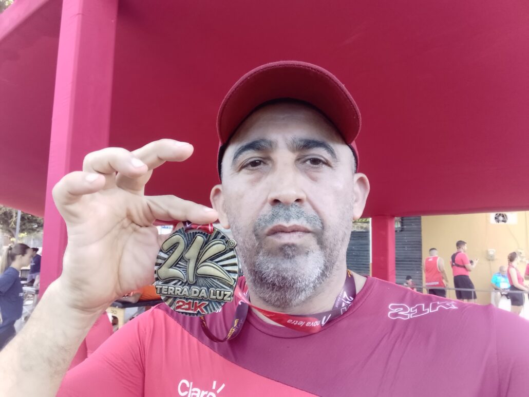 A medalha achei muito “tímida”! Pôxa!!! É a 21K Terra da Luz!!! A meia maratona oficial do Ceará! Era pra ser um medalhão pancada!!!